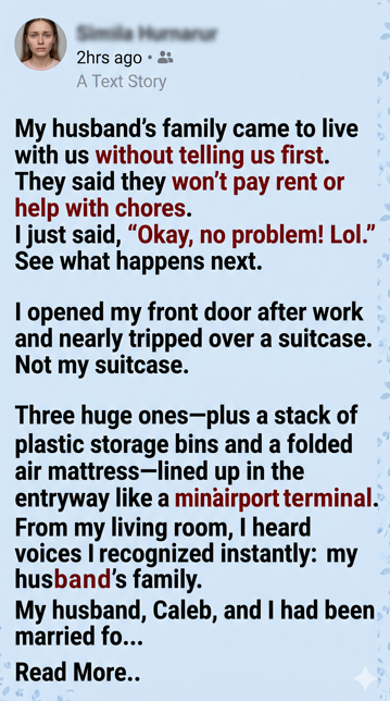 Then I walked out the door for work, leaving three suitcases, a shocked husband, and an entire family realizing they had picked the wrong house to treat like a free hotel.