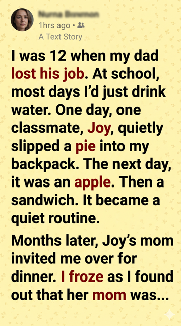 Joy’s mom welcomed me in like I belonged. The table was full—more food than I had seen in months. Joy nudged me to sit, like it was the most normal thing in the world.