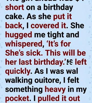 The girl at the checkout couldn’t have been more than ten. She held a small chocolate birthday cake with uneven frosting and plastic flowers. When the cashier announced the total, she opened her wallet—loose coins, a few wrinkled bills—and then froze.