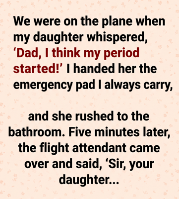 I stood up immediately and followed her down the narrow aisle of the plane. My mind was racing. It was her first period, and I knew she was already embarrassed about it. The last thing I wanted was for her to feel alone.
