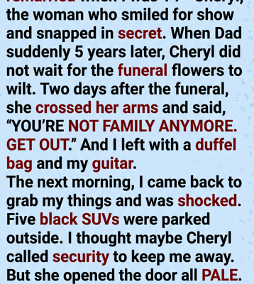 Cheryl started screaming as the guards stepped onto the porch, but I didn’t watch. I walked past her, past the fake tears and the greed, and stepped back into my father’s house. I set my guitar down in the hallway. I was finally home, and for the first time in five years, the air felt clear.