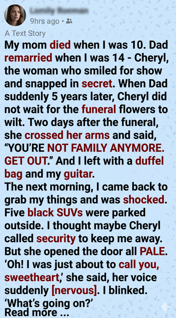 Cheryl started screaming as the guards stepped onto the porch, but I didn’t watch. I walked past her, past the fake tears and the greed, and stepped back into my father’s house. I set my guitar down in the hallway. I was finally home, and for the first time in five years, the air felt clear.