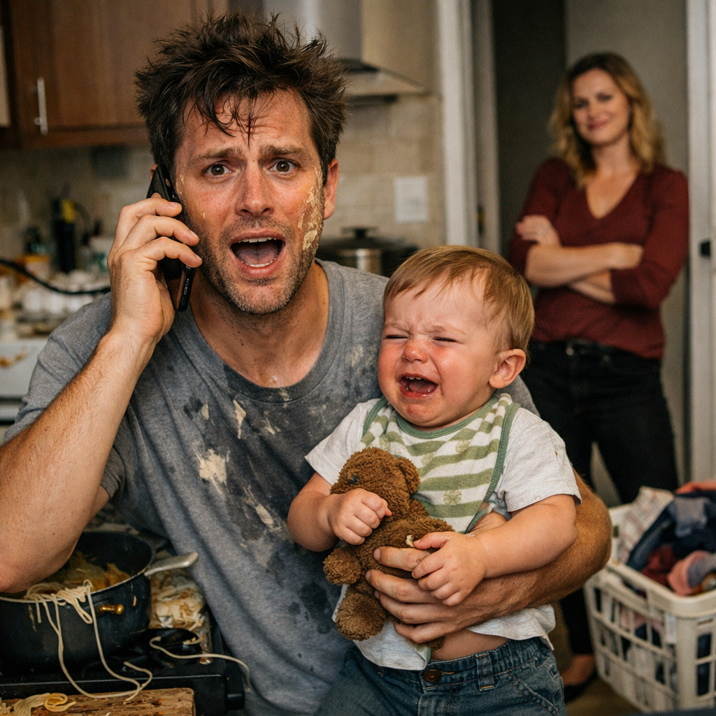 Daniel stood in the kitchen, holding our son with one arm, spaghetti slipping from the pot in the other.