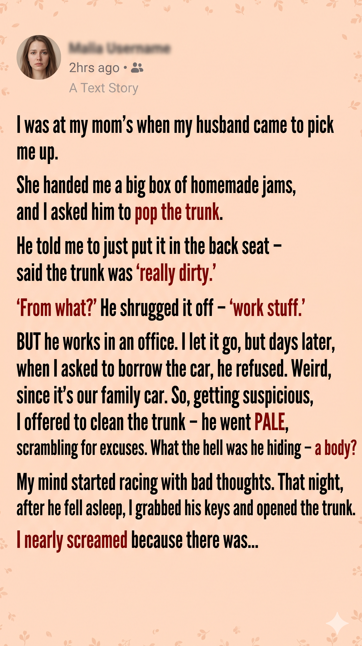 The air in the garage felt different. Too still. Like the car was holding its breath. I turned the key in the trunk lock and heard the soft mechanical click.