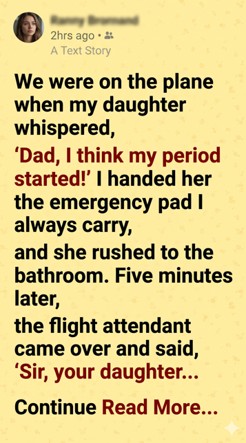 I stood up immediately and followed her down the narrow aisle of the plane. My mind was racing. It was her first period, and I knew she was already embarrassed about it. The last thing I wanted was for her to feel alone.