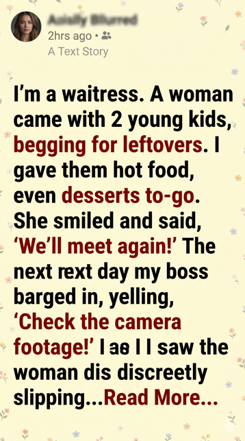 The footage zoomed in. My boss leaned closer, confused. The woman had taken nothing from the table. Instead, she had quietly tucked a folded envelope beneath the edge of the receipt holder before gathering her kids and walking out with a soft smile.