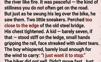 Jack grabbed the small hand and pulled him over the barrier, wrapping the boy in a bear hug that smelled of gasoline, leather, and safety. The boy collapsed against him, sobbing into the biker’s chest, releasing the weight he’d been carrying alone.