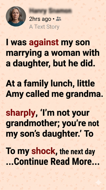 The next day, I woke up still thinking about the lunch. The words I had said to little Amy echoed in my head. I tried to convince myself that I was right—that she wasn’t really my granddaughter.