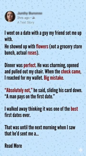 I thought about sending the money just to avoid the awkwardness. But something about the whole thing felt… transactional. Like the flowers, the door-opening, the chair-pulling — all of it was part of some script.