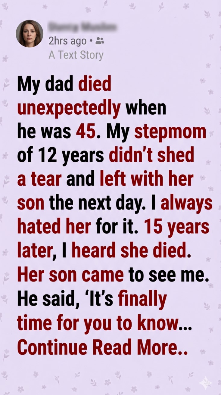 He took a deep breath. “The night your dad died… it wasn’t sudden for her.”