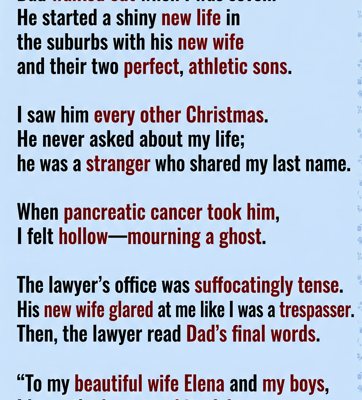 All those years of being forgotten, of watching him choose another family—it didn’t disappear. Money couldn’t fix that. His words couldn’t either. But they revealed something I had never heard from him while he was alive: