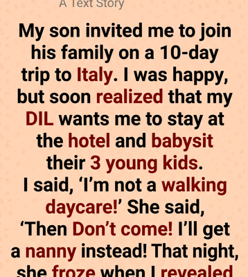 When I later informed them that I’d still be going—paying for everything myself—my daughter-in-law was clearly stunned. My son tried to convince me to help with the kids, saying that’s what grandmothers are supposed to do.