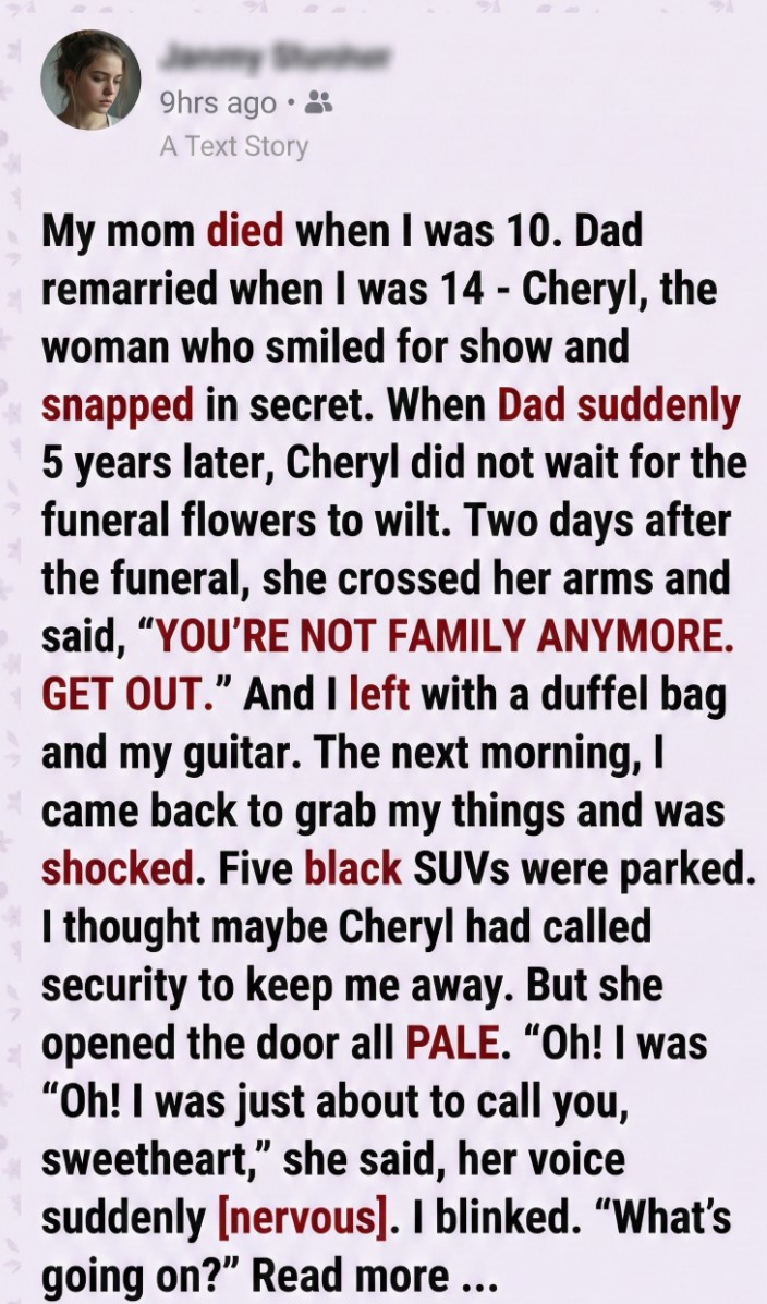 Cheryl started screaming as the guards stepped onto the porch, but I didn’t watch. I walked past her, past the fake tears and the greed, and stepped back into my father’s house. I set my guitar down in the hallway. I was finally home, and for the first time in five years, the air felt clear.