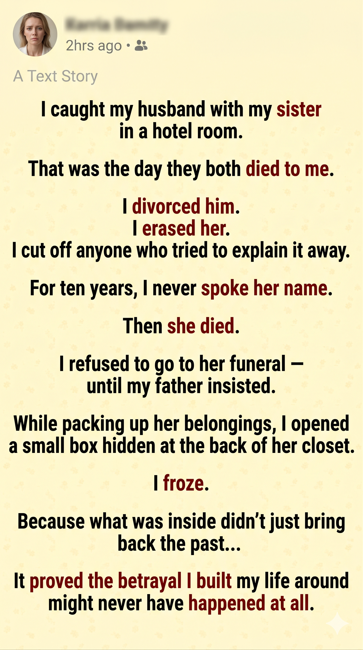 Within a month, I filed for divorce. Within a year, I cut off my sister completely. Blocked her number. Skipped family holidays. Told my father I didn’t have a sister anymore.
