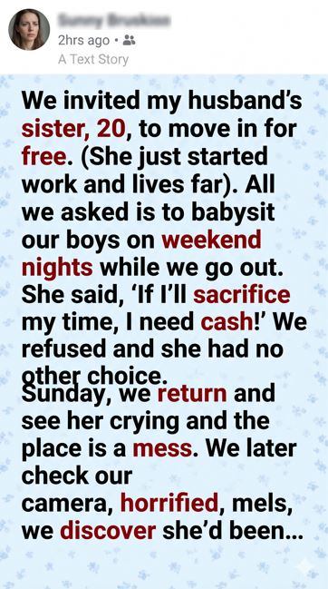 We welcomed my husband’s sister, Lily, to live with us, thinking we were giving her a hand. A room, meals, stability—no rent. All we asked was a little help with our boys on weekend evenings. Simple. Fair. Family supporting family.