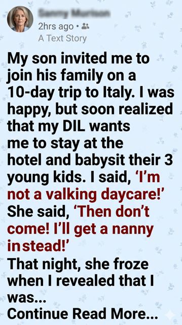 I’m Joyce, a 68-year-old retired widow. This past September, my son invited me to join his family for a 10-day vacation in Italy. At first, I was excited—thinking it would be a chance to reconnect, make memories, and feel part of their lives again.