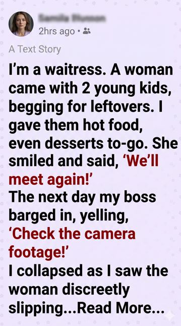 The footage zoomed in. My boss leaned closer, confused. The woman had taken nothing from the table. Instead, she had quietly tucked a folded envelope beneath the edge of the receipt holder before gathering her kids and walking out with a soft smile.
