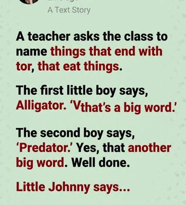 Johnny sits, satisfied, while the rest of the class keeps chuckling—because somehow, in his own way, he wasn’t entirely wrong.
