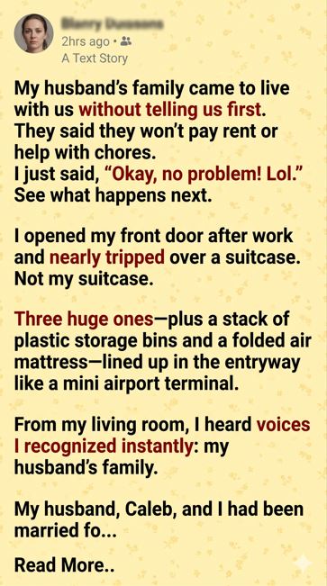 Then I walked out the door for work, leaving three suitcases, a shocked husband, and an entire family realizing they had picked the wrong house to treat like a free hotel.