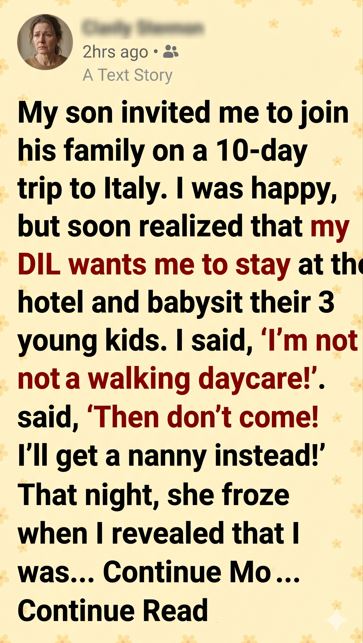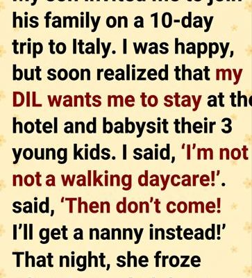 When I later informed them that I’d still be going—paying for everything myself—my daughter-in-law was clearly stunned. My son tried to convince me to help with the kids, saying that’s what grandmothers are supposed to do.