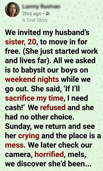 We welcomed my husband’s sister, Lily, to live with us, thinking we were giving her a hand. A room, meals, stability—no rent. All we asked was a little help with our boys on weekend evenings. Simple. Fair. Family supporting family.