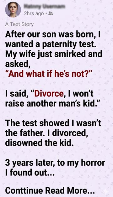 Now, I live with the lesson learned too late: trust is the foundation of love. Once doubt takes hold, it can destroy everything. All I can do is grow, accept the consequences, and hope that one day my son will understand the full story and decide for himself who I am.