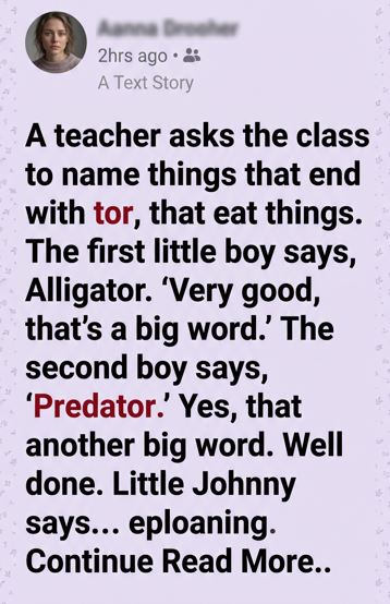 The room goes silent for a second—then erupts in even louder laughter. Even the teacher can’t help but smile, shaking her head.