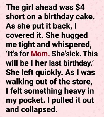The girl at the checkout couldn’t have been more than ten. She held a small chocolate birthday cake with uneven frosting and plastic flowers. When the cashier announced the total, she opened her wallet—loose coins, a few wrinkled bills—and then froze.