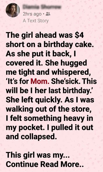 Everything shattered and rushed back at once: sixteen years of silence, anger, and distance. And now my mother was sick. And this girl—holding the cake—was the key.