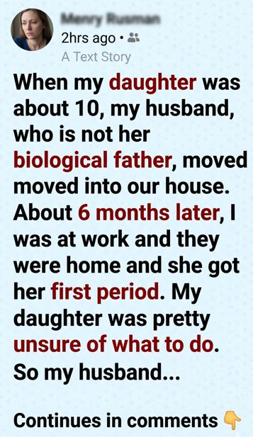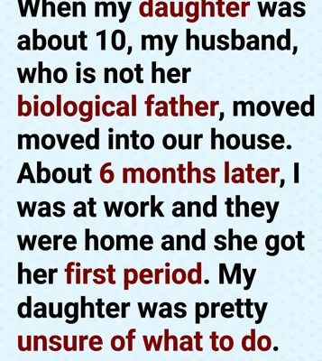 When my daughter was about 10, my husband, who is not her biological father, moved into our house. About 6 months later, I was at work and they were home when she got her first period. My daughter was pretty unsure of what to do.