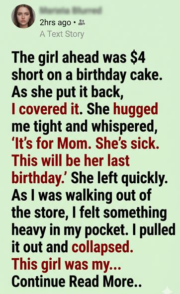The girl at the checkout couldn’t have been more than ten. She held a small chocolate birthday cake with uneven frosting and plastic flowers. When the cashier announced the total, she opened her wallet—loose coins, a few wrinkled bills—and then froze.