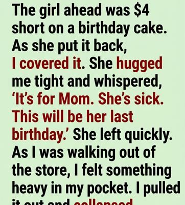 The girl at the checkout couldn’t have been more than ten. She held a small chocolate birthday cake with uneven frosting and plastic flowers. When the cashier announced the total, she opened her wallet—loose coins, a few wrinkled bills—and then froze.