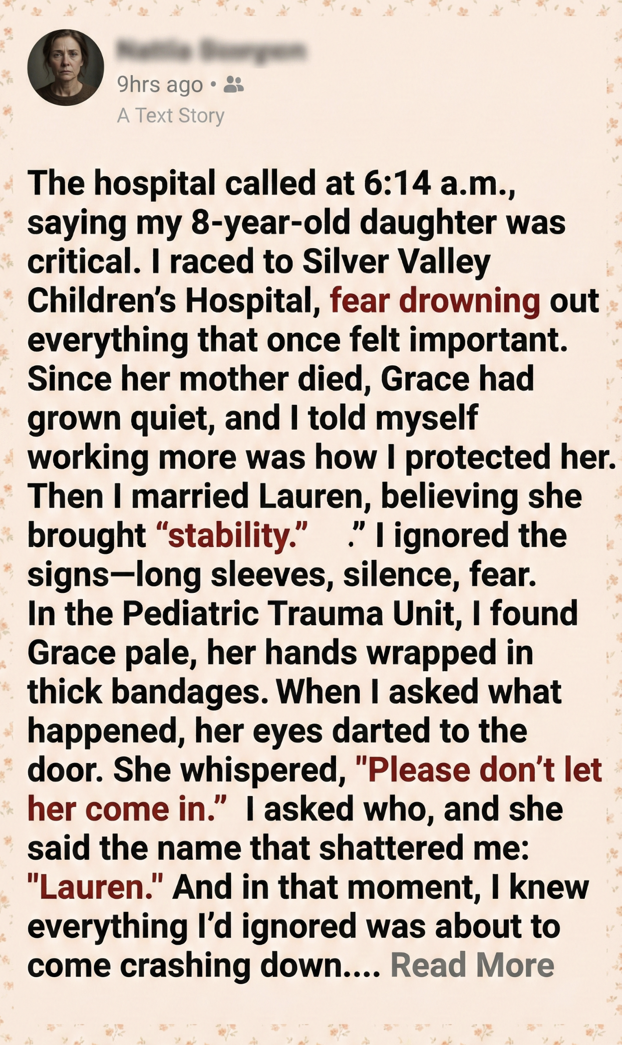 I do not remember hanging up the phone, and I do not remember deciding to drive faster than I ever had before, because my body moved on instinct alone, gripped by a fear that no financial risk or professional failure had ever come close to matching.