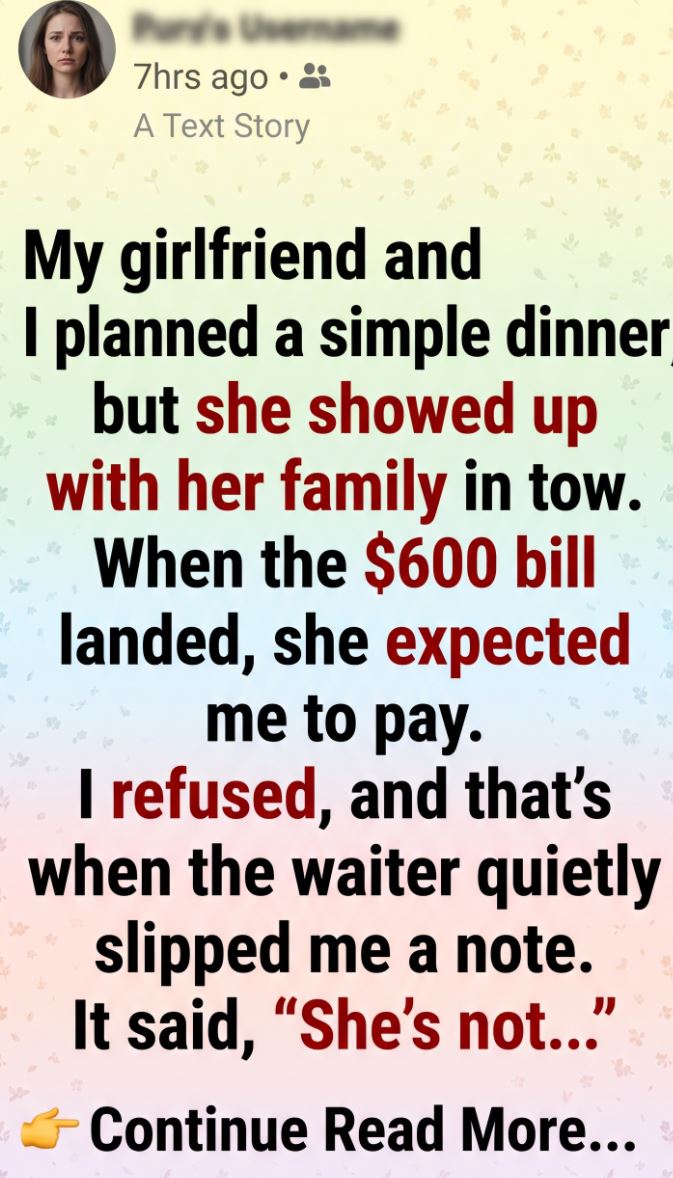 Nothing extravagant. Just a quiet Friday night at a mid-range restaurant downtown. We’d both had long weeks, and I thought it would be a nice chance to unwind, talk, and maybe discuss the next step in our relationship. We’d been together almost a year. I was starting to think about the future.