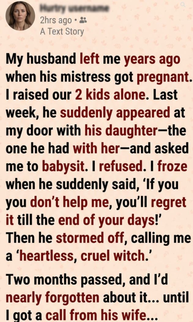 He abandoned his family, made threats when refused help—and now his new wife is calling with something unexpected.