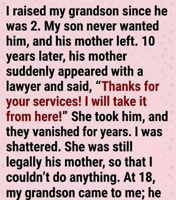 I looked up at my grandson. He was watching me carefully, his eyes red, just like when he was little and tried not to cry.