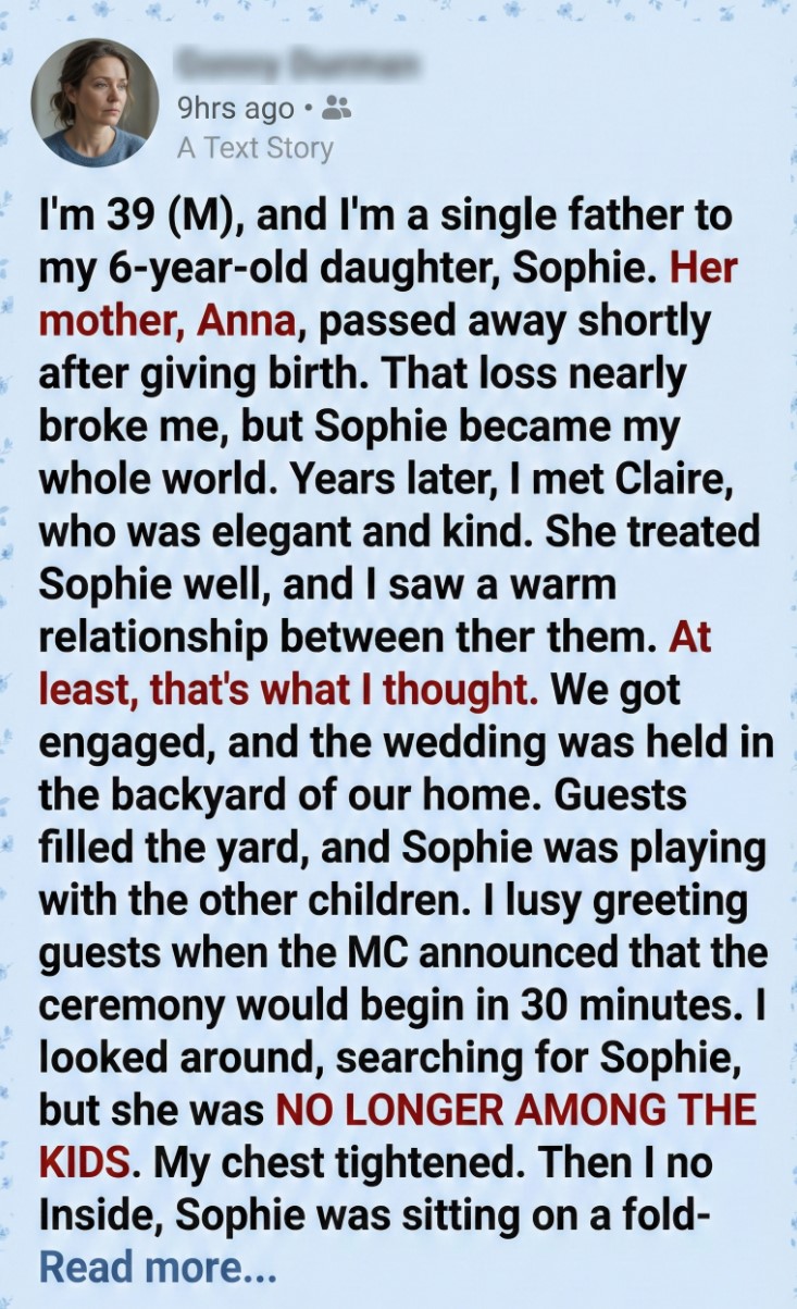 I’m 39, a single father to my six-year-old daughter, Sophie. Her mother, Anna, passed away shortly after giving birth. Losing her nearly destroyed me, but Sophie became my reason to keep going. Every smile, every bedtime story, every tiny hand wrapped around my finger reminded me why I had to stay strong.