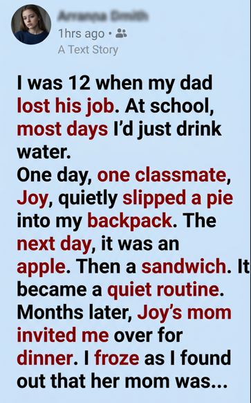 Joy’s mom welcomed me in like I belonged. The table was full—more food than I had seen in months. Joy nudged me to sit, like it was the most normal thing in the world.
