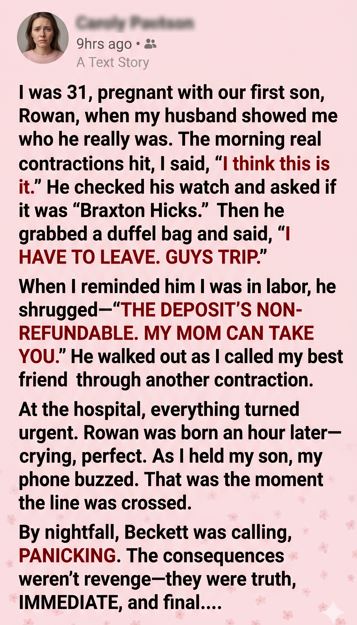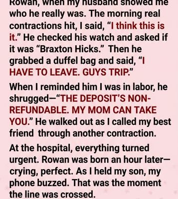 “Text me your contraction times,” she said. Her voice went flat and focused. “I’m leaving work right now. Do not drive. Do not wait for his mother.”