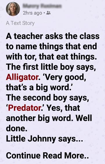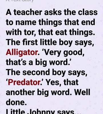 The teacher raised an eyebrow. “Johnny, that does end with ‘tor,’ but how exactly does a refrigerator eat things?”