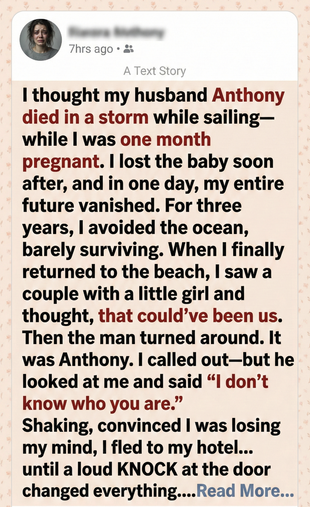 “No, it’s not! It’s Anthony. It’s me — Marissa. Your wife,” I said, as tears streamed down my face. He was alive!