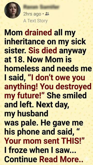 “She didn’t die back then. The doctors said she had a chance, a small one, but it meant long-term treatment. Expensive treatment.” Her voice cracked. “I used the inheritance to keep her alive. Every cent.”