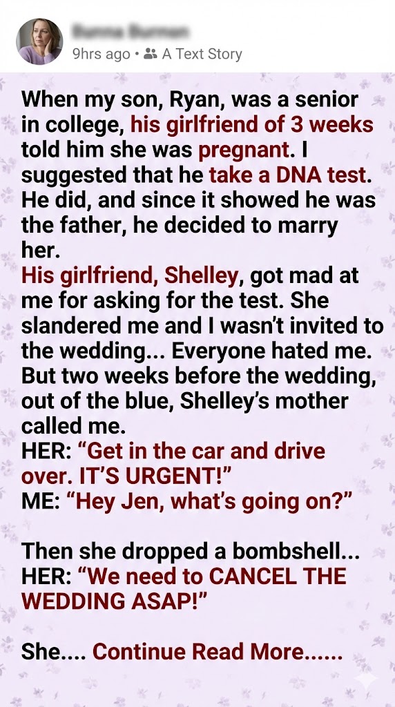 His girlfriend, Shelley, got mad at me for asking for the test. She slandered me and I wasn’t invited to the wedding… Everyone hated me. But two weeks before the wedding, out of the blue, Shelley’s mother called me.