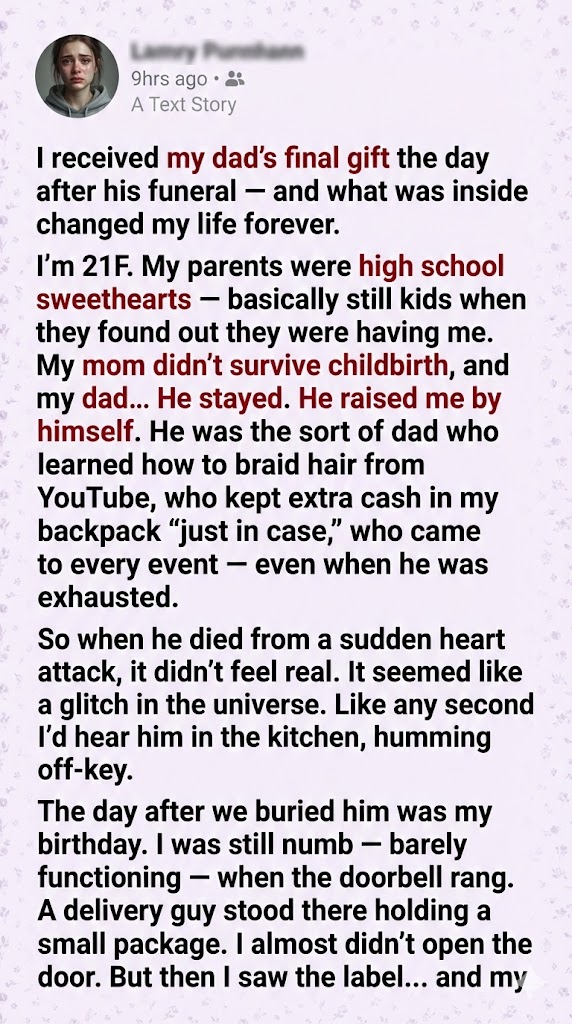 I’m 21F. My parents were high school sweethearts — basically still kids when they found out they were having me. My mom didn’t survive childbirth, and my dad… He stayed. He raised me by himself. He was the sort of dad who learned how to braid hair from YouTube, who kept extra cash in my backpack “just in case,” who came to every event — even when he was exhausted.