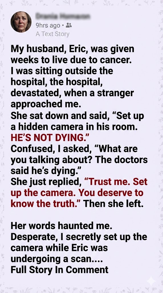 I sat in the hospital cafeteria, watching the live feed on my phone, feeling guilty for even doubting him. For an hour, the room was empty.
