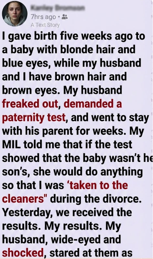 The day my daughter was born should have been pure joy, but it quickly became complicated. After nearly 20 hours of labor, I held our newborn and felt complete—until I looked at my husband, Marcus, and saw uncertainty instead of awe. Because our baby had light hair and blue eyes while Marcus and I both have darker features, he immediately asked if she was really his and demanded a paternity test. To me, the request felt like a betrayal at the worst possible moment.