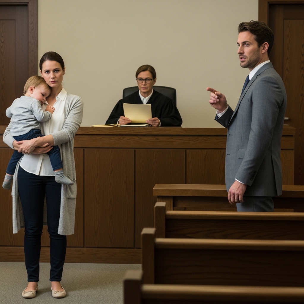 My son was crying on my shoulder. He was barely two, confused by the strange room, the raised voices, the tension he couldn’t understand. I rocked him gently, whispering to him, trying to keep him calm while my own hands shook.