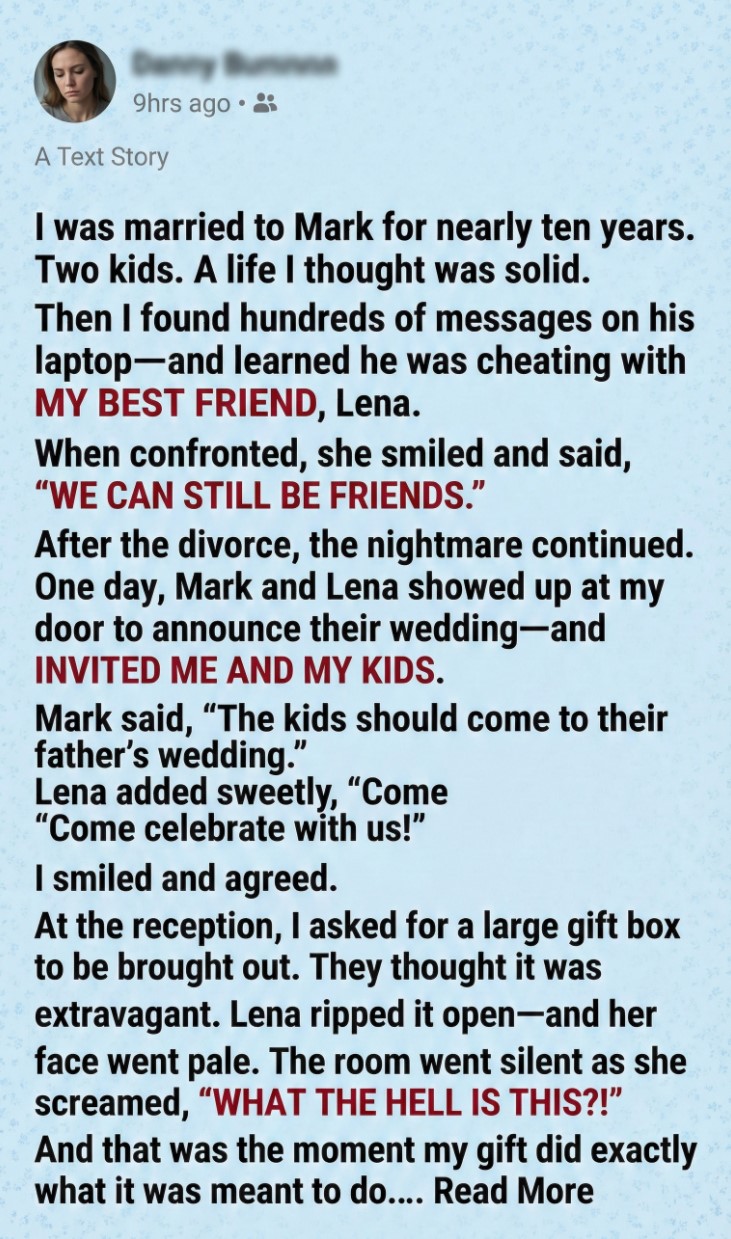 When Sarah is invited to the wedding of her ex-husband and ex-best friend, she chooses grace over chaos, or so it seems. In a story about betrayal, resilience, and the power of quiet truth, one woman brings a gift that no one saw coming… and no one will ever forget.
