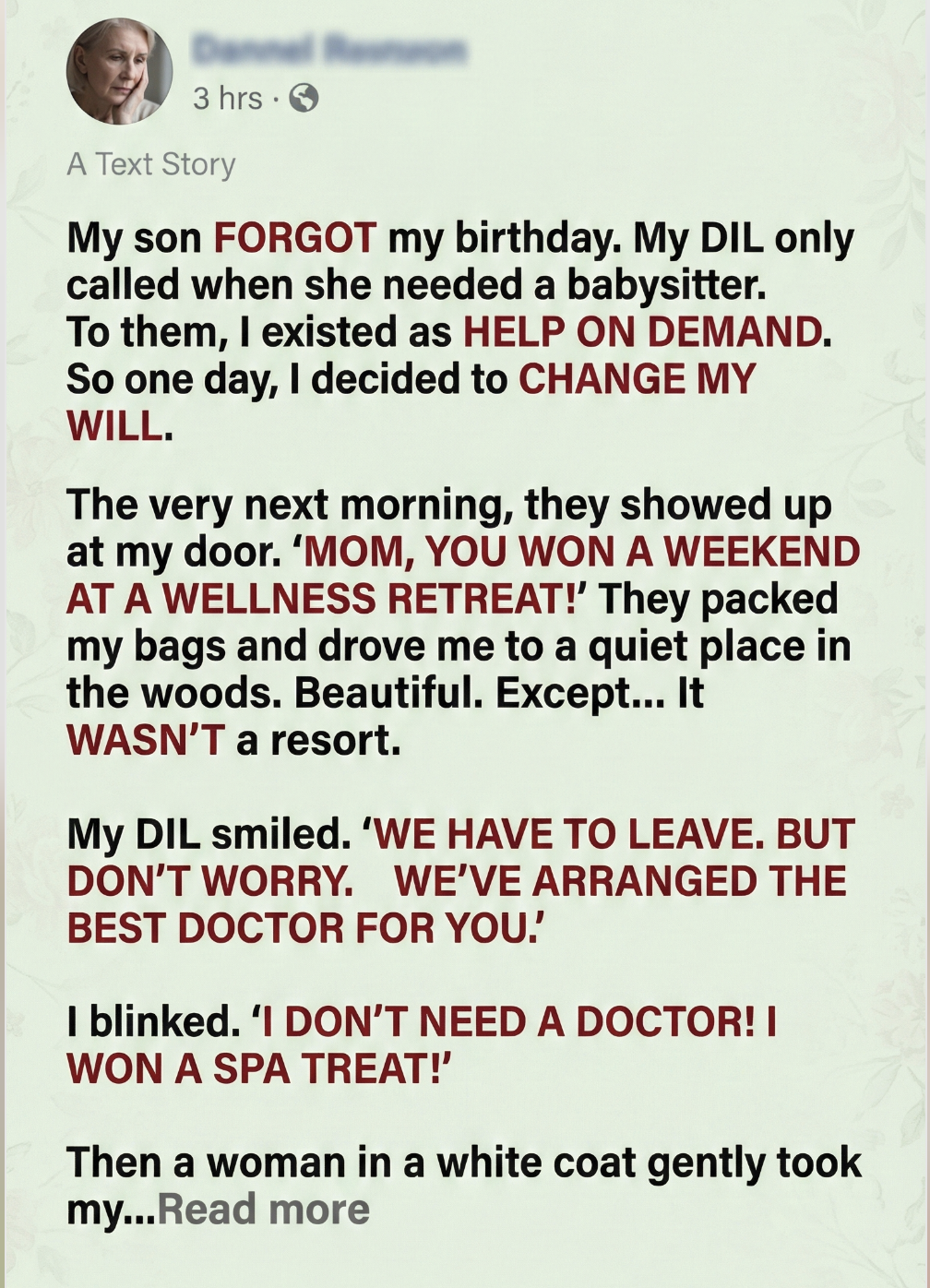 My son and his wife told me to pack for a relaxing spa weekend. But when I saw the gates of the nursing home close behind me, I realized I’d been tricked. Вy my own family.