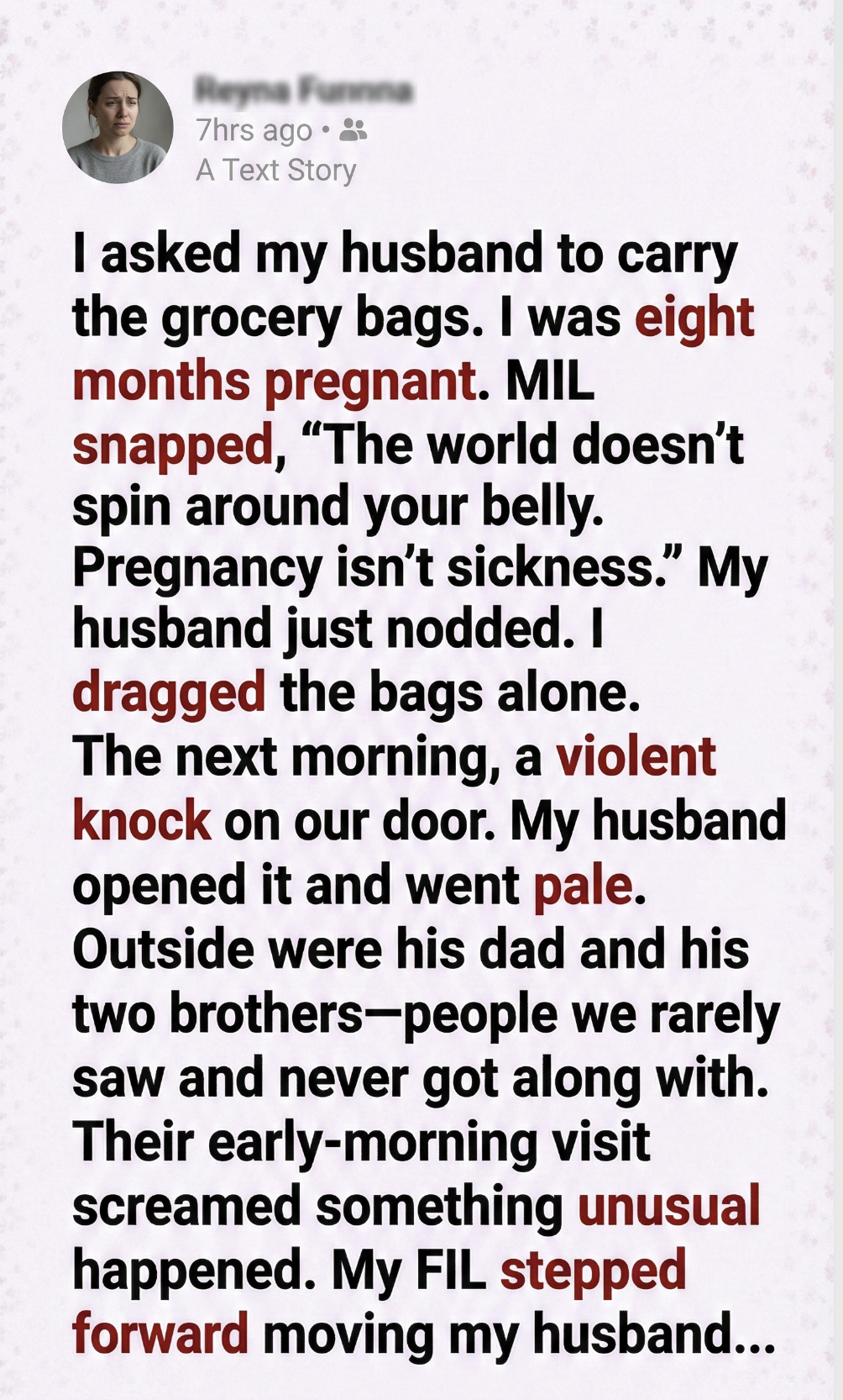 It wasn’t a dramatic request. Just a quiet, exhausted one—my back aching, my ankles swollen, the baby pressing low and heavy. The bags were full of ordinary things: rice, milk, vegetables, prenatal vitamins. Life things.